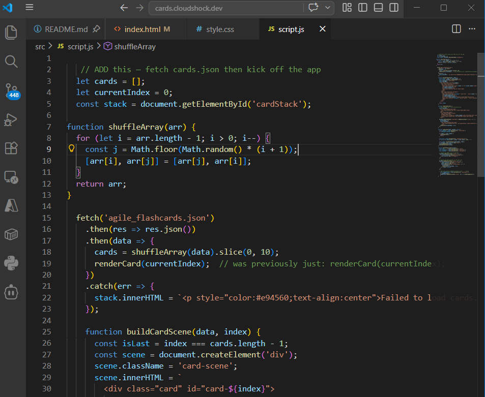 Later I split the site into three files and opted for a more modular design. I repeated this pattern with the CloudShock blog as I intended to reuse the core JS and CSS across several documents. During this process I also used my generic “Software Engineer” with Sonar for general tasks.